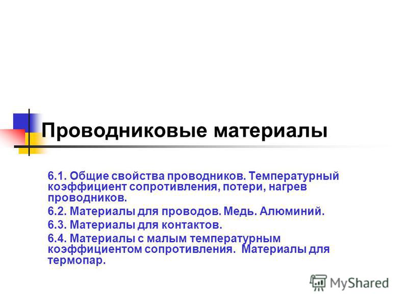 Основные характеристики проводников Дата публикации: 14 января 2015. Категория: Электротехника. Основными характеристиками проводниковых материалов являются:Удельное электрическое сопротивление; Температурный коэффициент сопротивления; Теплопроводность; Контактная разность потенциалов и термоэлектродвижущая сила; Временное сопротивление разрыву...