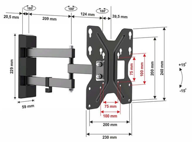 Прежде, чем его выбрать, нужно посмотреть размер крепления в характеристиках: например, если это VESA 200*200 — значит, расстояние между крепежом должно быть 200 мм. Как правило, кронштейны более-менее универсальны: например, годятся для стандартов от 50*50 до 200*200. Точные цифры всегда можно уточнить в описании кронштейна.