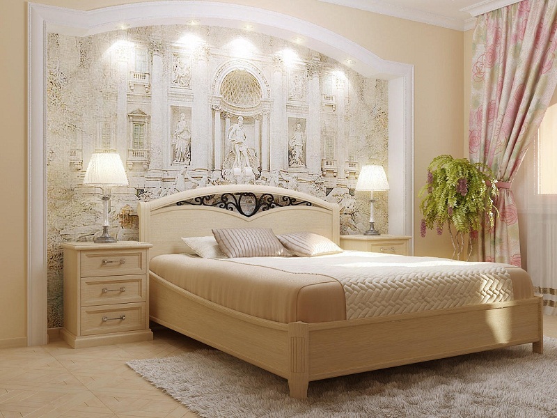 Глубокая ниша не только подчеркивает изголовье, она может выполнять множество разнообразных практических функций. В ней устраивают дополнительное место для размещения разных предметов. Зачастую две такие ниши выполняют роль прикроватных тумб. Наиболее предприимчивые хозяева внутри такой ниши монтируют стеллаж из полок.
