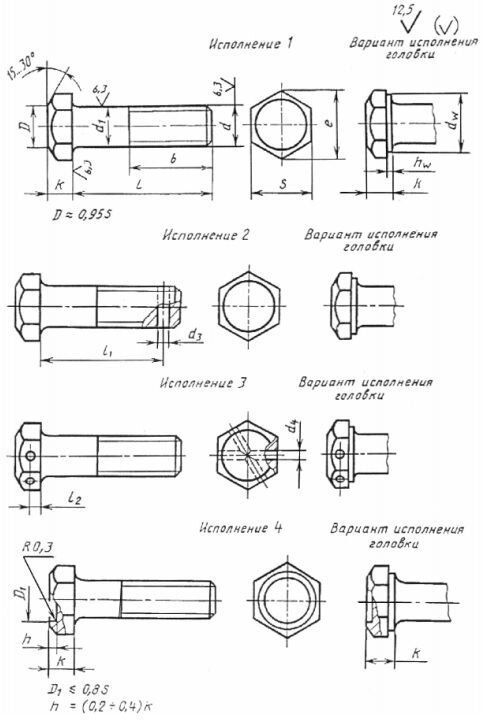 1.5. Допускаемые отклонения формы, от установленной в стандартах на конструкцию болтов, винтов, шпилек и гаек всех классов точности, должны соответствовать указанным в обязательном приложении 5.