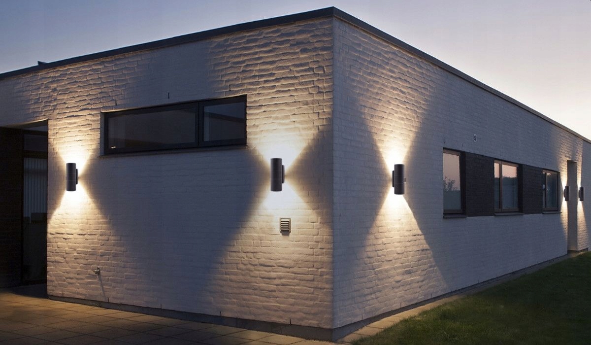 - настенные. Крепятся на стены здания. Предназначены для освещения отдельных элементов здания. Такой тип приборов используется, когда возникает необходимость вывести узкий пучок света. Настенные светильники бывают односторонние и двухсторонние. Для освещения частного дома используются приборы с двусторонней направленностью.