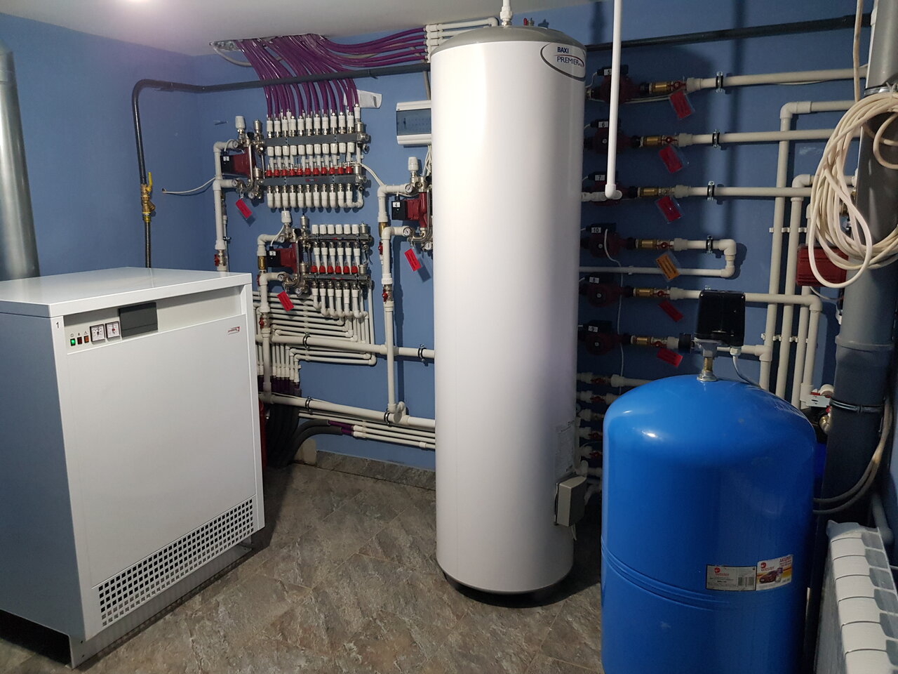Собственно, сам котел, в котором и происходит нагрев теплоносителя. Для больших домов потребуется установка коллектора, разводящего теплоноситель между отдельными группами отопительных приборов.