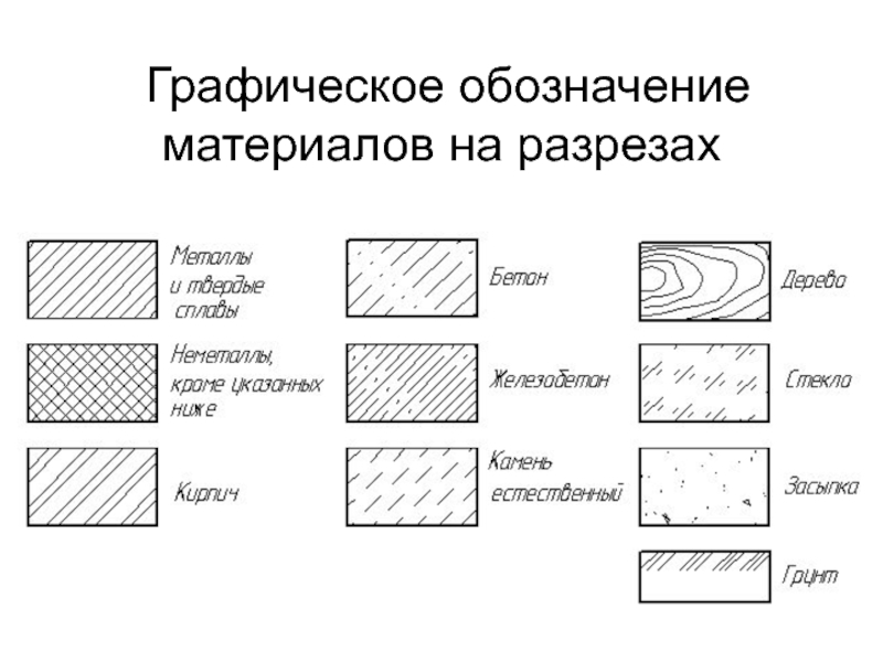 В строительных чертежах допускается на сечениях незначительной площади любой материал обозначать как металл или вообще не применять обозначение, сделав поясняющую надпись на поле чертежа.
