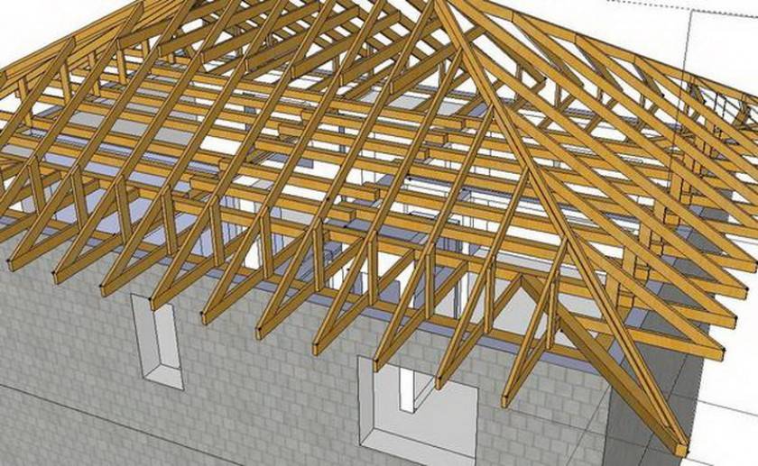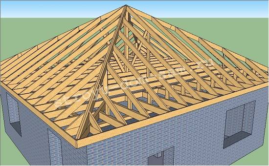 Стропильная система четырехскатной крыши образует каркас кровли. Она складывается из таких элементов: