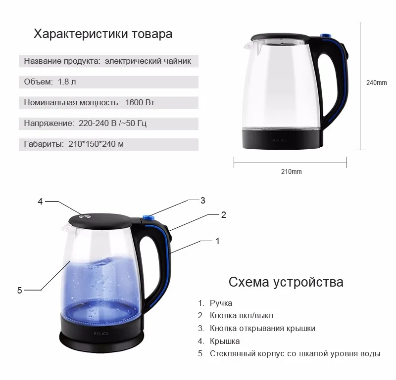 5 л. воды; - Выбирайте модели у которых провод энергопитания подключён к базе, это облегчит перемещение чайника;