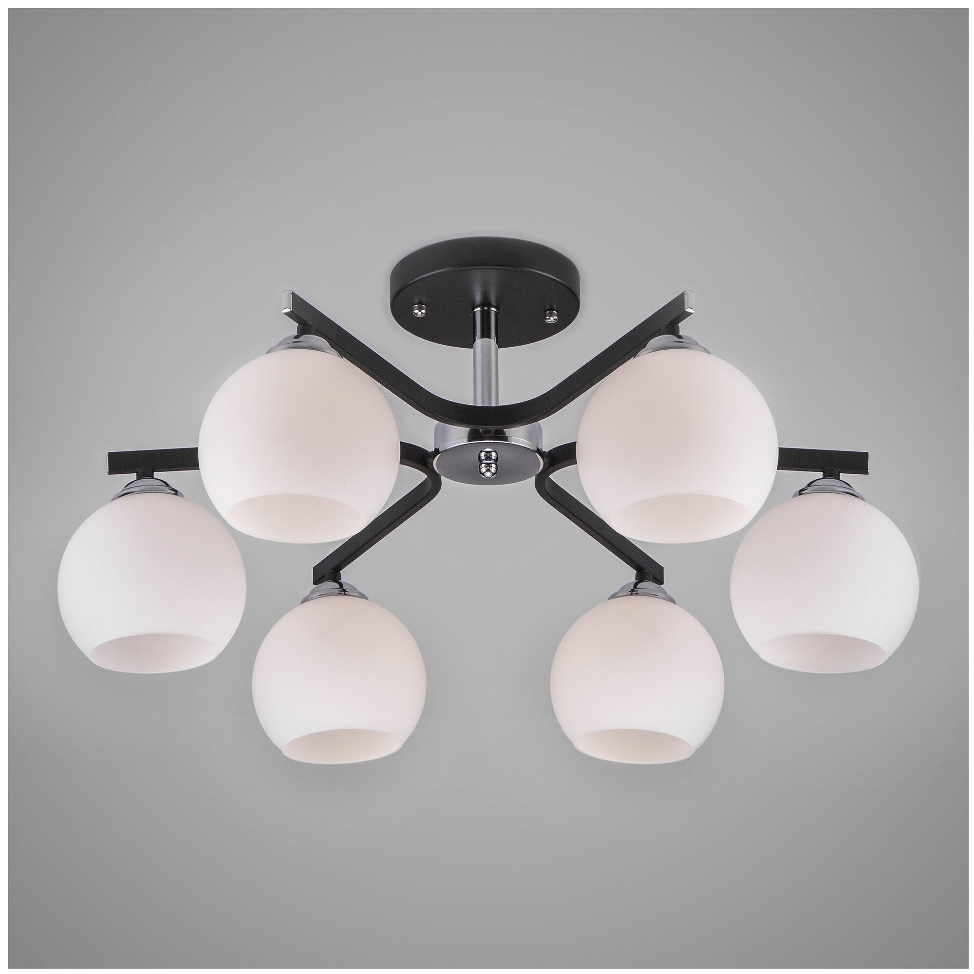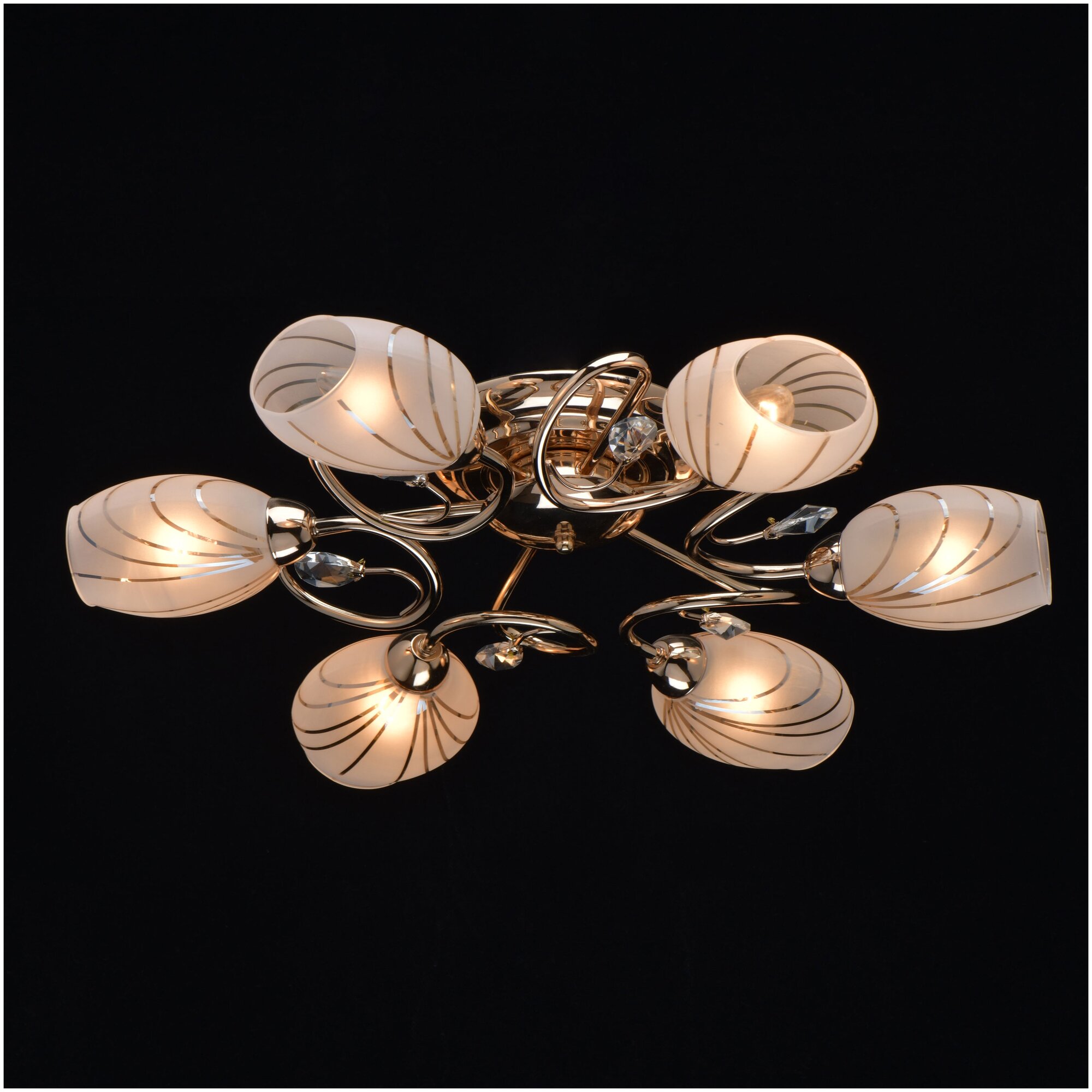 Подобные приборы для освещения не подвешиваются. Крепление люстры происходит прямо к потолку. Такой вариант станет идеальным для помещений скромной площади с низким потолком. Плафоны моделей также могут выполняться из пластика или стекла.