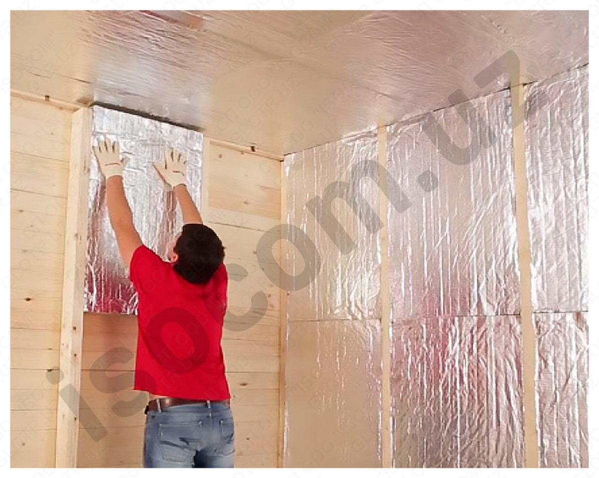 Производится потолочная теплоизоляция парилки бани поэтапно: