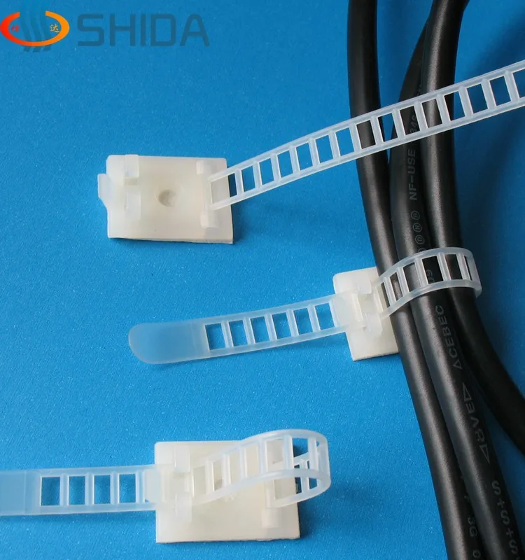 Самоклеящиеся зажимы изготавливаются пластиковыми или металлическими, используются для крепления кабелей различных форм. Перед проведением процедуры поверхность будущего места установки обязательно очищается от загрязнений и пыли.