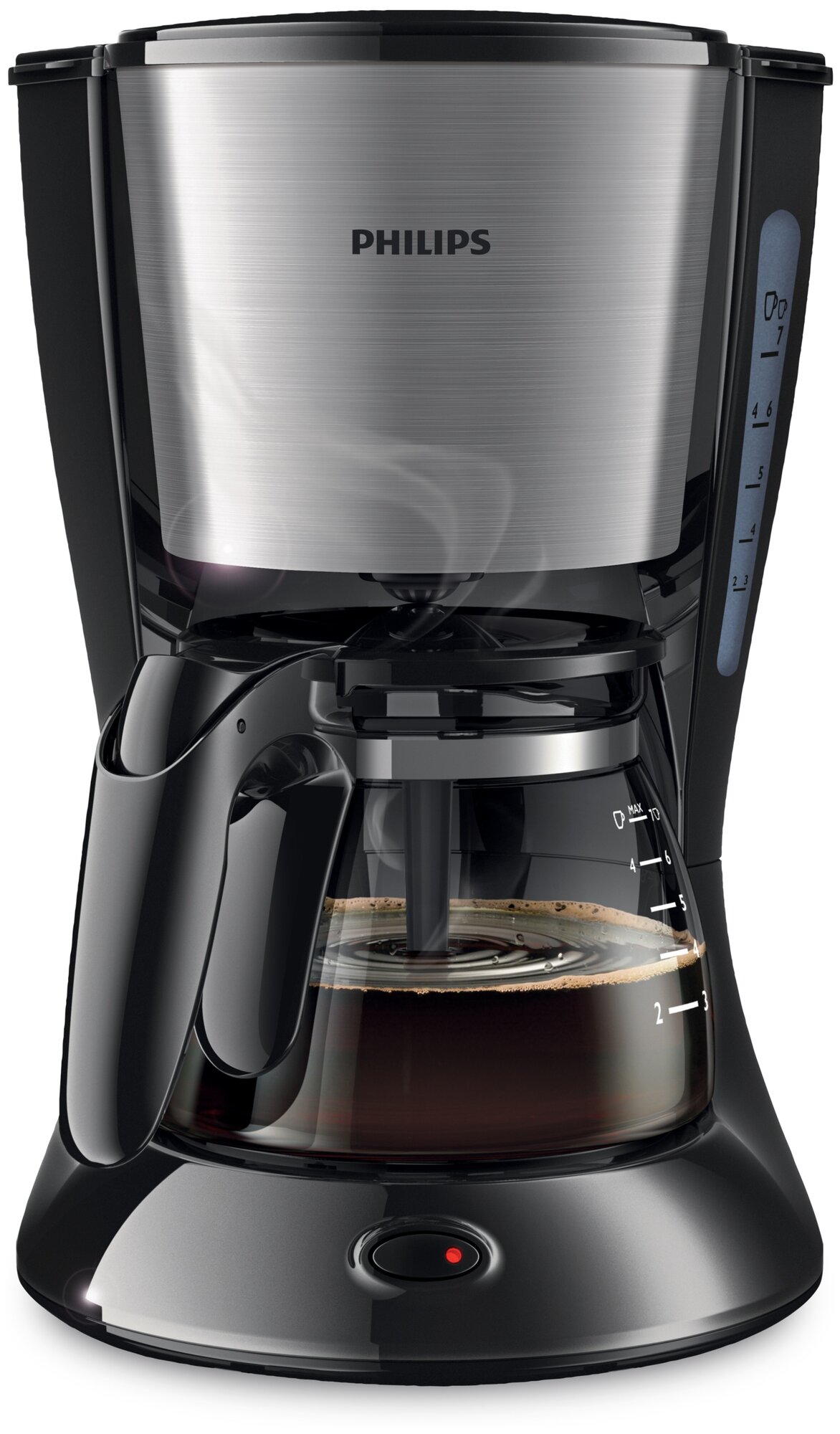 Многопоточная насадка и плоский фильтр означают, что аромат всегда будет равномерно извлекаться из вашей кофейной гущи, а стеклянный графин действительно хорошо разливается. Вы также можете выбрать от 4 до 10 чашек и держать излишки теплыми на конфорке. Но зачем варить больше, чем нужно, если это так просто?