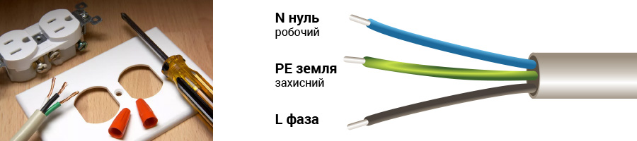 Существует международная аббревиатура, которая используется в любой стране мира. Фазный провод обозначают буквой «L», нулевой — «N», заземление — сочетанием «PE».