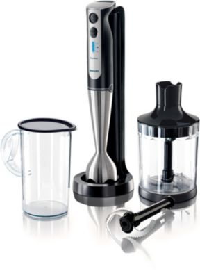 Прекрасная погружная модель со стильным внешним видом, производительностью в 750 Вт и нержавеющей основной части. С ней очень удобно работать, так как производитель довольно грамотно расположил панель управления. Детали блендера легко можно мыть в посудомоечной машине. Также нужно сказать о наличии турборежима, который нравится всем кулинарам. К недостаткам владельцы относят маленький размер венчика.