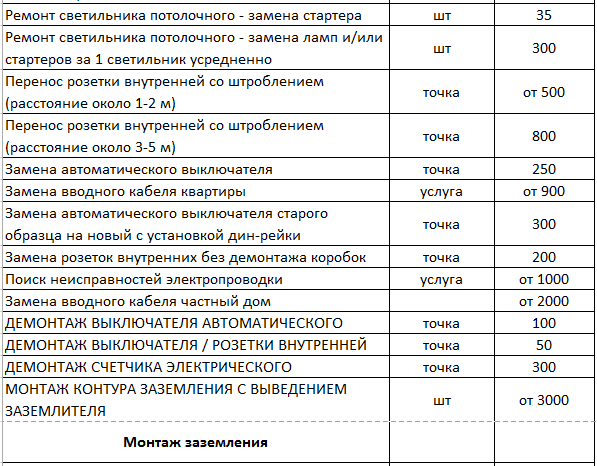 В приведенной ниже таблице указано, сколько вы можете рассчитывать потратить на различные электротехнические работы, которые могут быть связаны с заменой проводки в доме.
