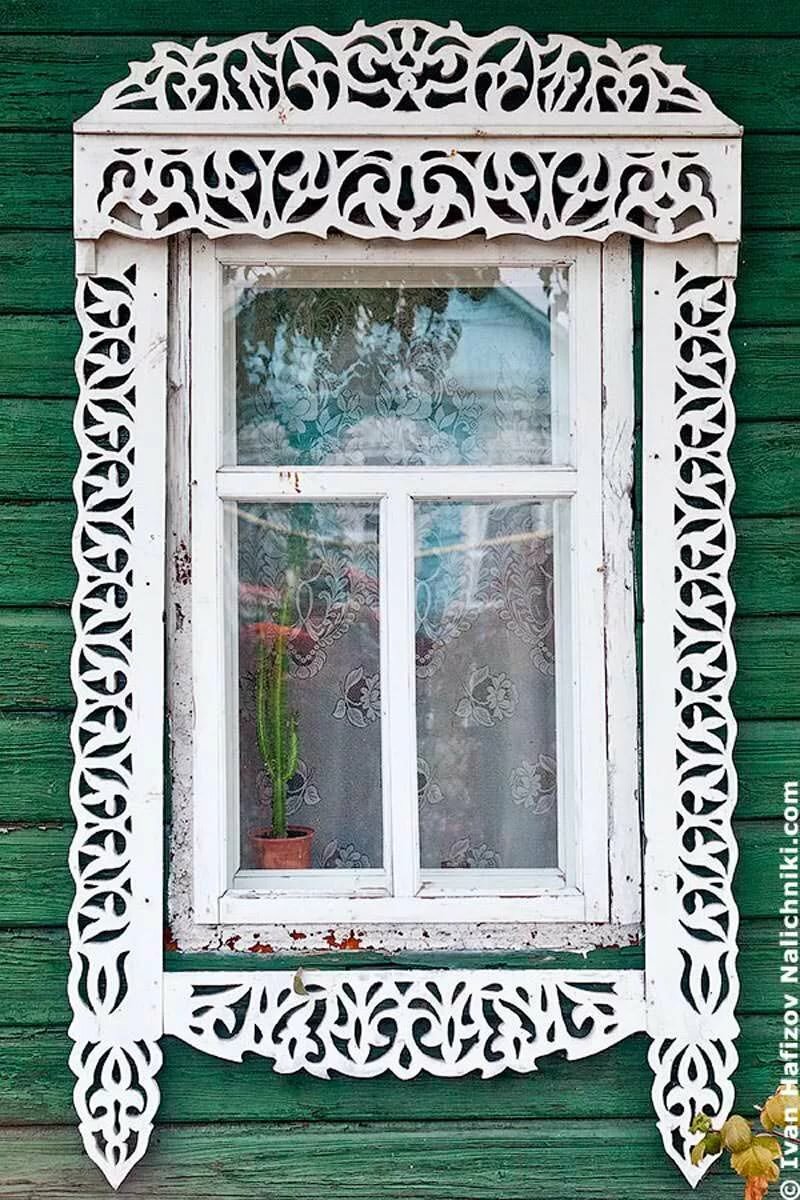 Наличники были неотъемлемым элементом украшения фасада русской избы. Зачастую, деревянные наличники копировались по форме и расцветке с каменных аналогов, украшавших более зажиточные и дорогие каменные дома, подклети и каменные сельские храмы, построенные профессиональными архитекторами.