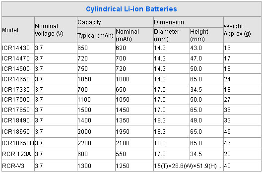 Несмотря на общее название класса возобновляемых источников питания – литий-ионные батареи – под этим названием скрывается несколько подкатегорий, различающихся по используемому активному веществу и некоторым потребительским свойствам. Для удобства сравнения разновидностей Li-ion элементов характеристики батарей 18650 различного исполнения сведены в таблицу.