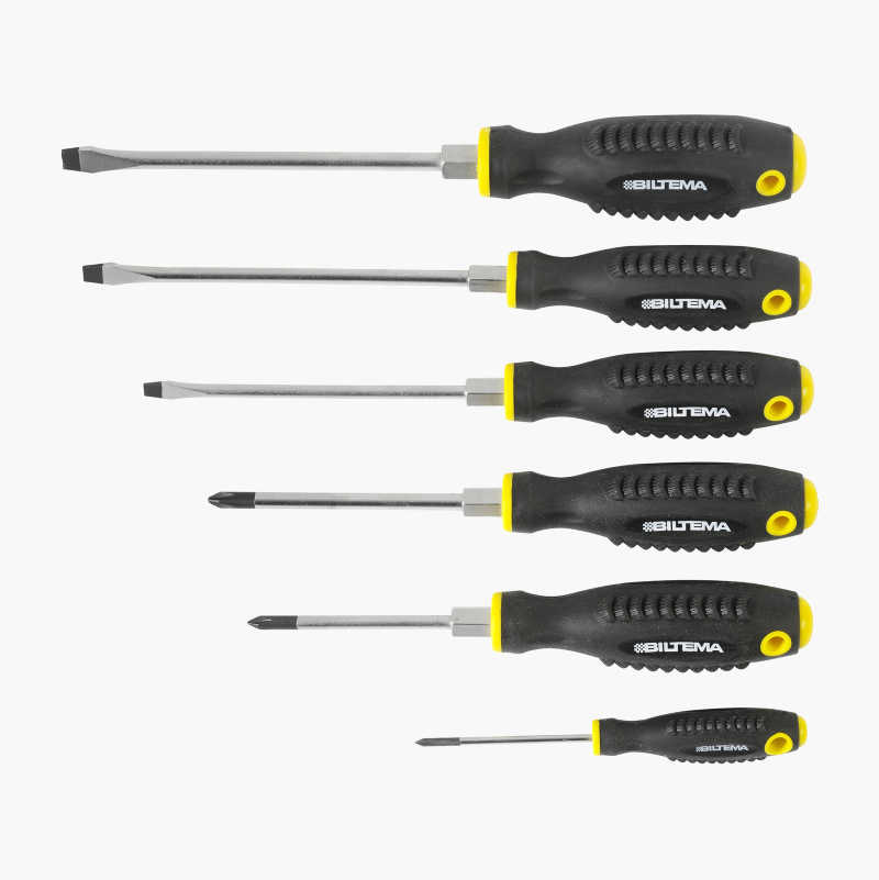 Шестигранные отвёртки потому так и называются, что они имеют наконечник с шестью гранями. Каждая плотно прилегает к прорезям крепёжных элементов — вот почему во время использования инструмента достигается лучший эффект. Используют отвёртку при сборке мебели и велосипедов.