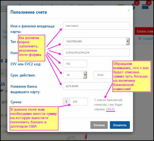 В данной теме приведена инструкция о том, как можно пополнить баланс сервиса с помощью банковской карты VISA или MasterCard. На данный момент мы принимаем только данные типы карт и можем дать возможность пополнять баланс только с помощью банковской карты.