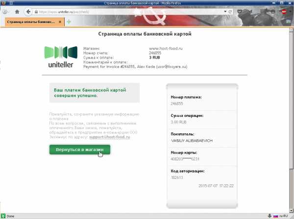 Я сразу же ввел данные на том сайте, где мне нужно было совершить оплату, и, на мое удивление, оплата прошла.
