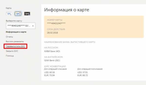 - В открывшемся слева меню нажать кнопку «перевыпустить QVC».