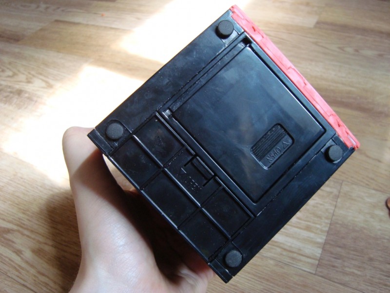 Для лучшей устойчивости на дне копилки есть 4 прорезиненые ножки. И тут находятся две съемные крышки. Одна прикрывает отсек для батареек типа АА, а во втором скапливаются все съеденные монетки.